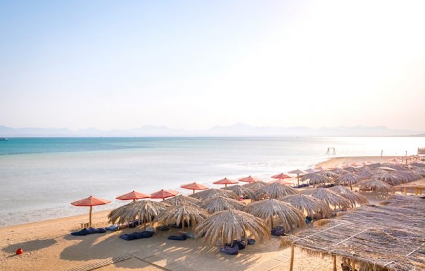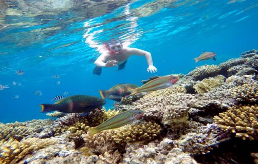 Paradise Island beckons with its laid-back charm and idyllic setting, offering the perfect escape from the hustle and bustle of everyday life. Imagine yourself lounging on the pristine white sandy beach, shaded by beautiful straw parasols, as you soak in the tranquility of your surroundings. With snorkeling and diving boats gliding past the island, it’s like having your own slice of paradise in the heart of the Red Sea.