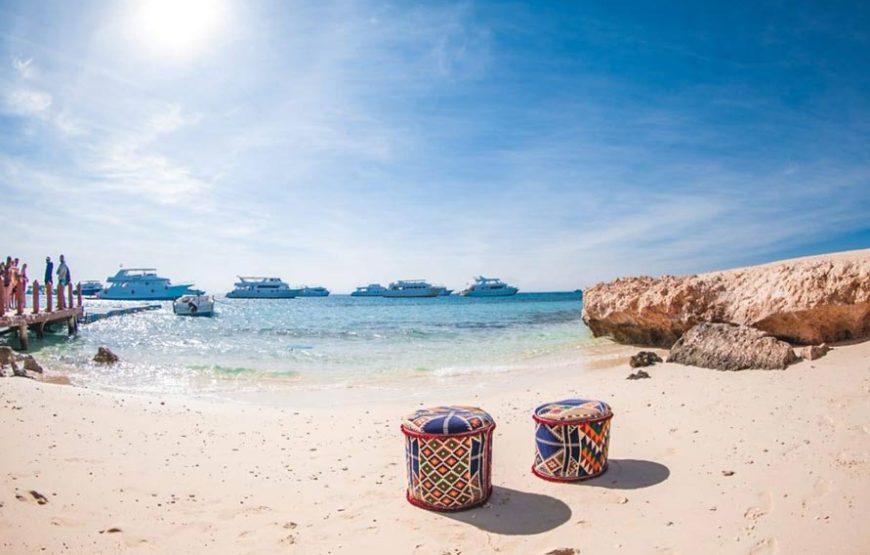 Paradise Island beckons with its laid-back charm and idyllic setting, offering the perfect escape from the hustle and bustle of everyday life. Imagine yourself lounging on the pristine white sandy beach, shaded by beautiful straw parasols, as you soak in the tranquility of your surroundings. With snorkeling and diving boats gracefully passing by, Paradise Island offers a serene backdrop for your getaway, allowing you to immerse yourself in the blissful ambiance of the Red Sea.